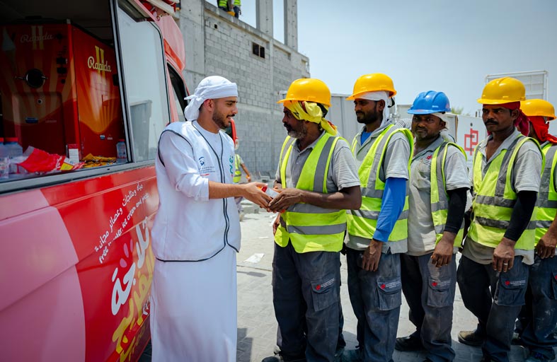 الحملة المجتمعية الإنسانية «ثلاجة الفريج» تواصل توزيع المياه الباردة والعصائر والمثلجات على العمال في دبي