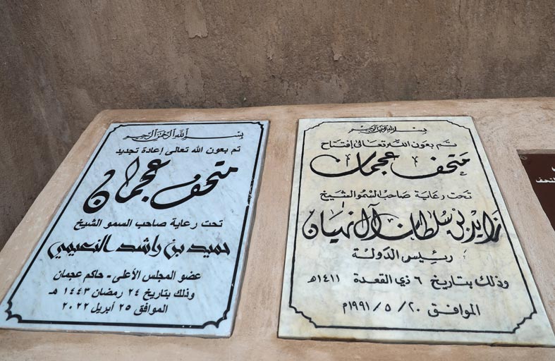 و في الخامس و العشرين من ابريل الماضي افتتح سمو الشيخ عمار بن حميد النعيمي ولي عهد عجمان متحف عجمان بحلّته الجديدة بعد ان أدخلت عليه تقنيات حديثة للصوت والصورة وطريقة العرض واعتُمد للمتحف شعار خاص يجسّد هويته الجديدة.