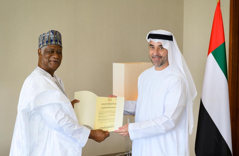 تسلّم سعادة عمر سيف غباش، مساعد وزير الخارجية والتعاون الدولي للشؤون الثقافية في ديوان عام الوزارة نسخة من أوراق اعتماد سعادة الحاج أحمد رمضان سفير جمهورية غانا لدى الدولة.