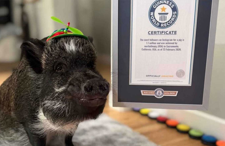 نال الخنزير الصغير «ميرلين»، البالغ من العمر 4 سنوات، لقب الخنزير الأكثر متابعة على إنستغرام وفقًا لموسوعة غينيس، بعد أن حقق شهرة واسعة على وسائل التواصل الاجتماعي بأكثر من 1.1 مليون متابع.