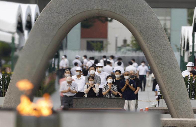 أحيت مدينة هيروشيما اليابانية أمس الأول السبت ذكرى مرور 77 عاما على إلقاء أول قنبلة ذرية في العالم عليها، في وقت تتصاعد فيه حدة التحذيرات عالميا من المخاطر المترتبة على سباقات التسلح النووي.