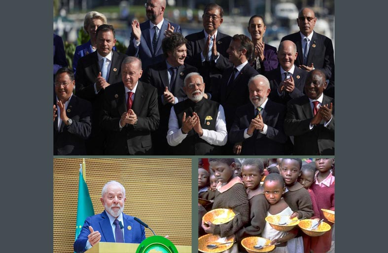 يوم الاثنين الموافق 18 تشرين الثاني-نوفمبر، قام رئيس مجموعة العشرين، وهو عالم معادن سابق، بتشكيل التحالف العالمي ضد الجوع رسميًا والذي كان حريصًا جدًا عليه، بدعم من 82 دولة موقعة و66 منظمة. وقال للزعماء: “الأمر متروك لمن حول هذه الطاولة لتولي المهمة العاجلة المتمثلة في القضاء على هذا الطاعون الذي يُخجِل الإنسانية”. متوجها لعمالقة الدول الأكثر تقدما. والهدف الذي يحدده طموحه هو إرضاء نصف مليار شخص بحلول عام 2030، في حين يعاني 733 مليون شخص من الجوع في عام 2023، أو 9% من سكان العالم. وبعبارة أخرى، فهو يقترح القضاء فعليا على الجوع، في وقت قصير جدا. وقد تقدمت بالفعل الجهات المانحة الرئيسية، مثل بنك التنمية للبلدان الأميركية، الذي وعد بتعبئة 25 مليار دولار.