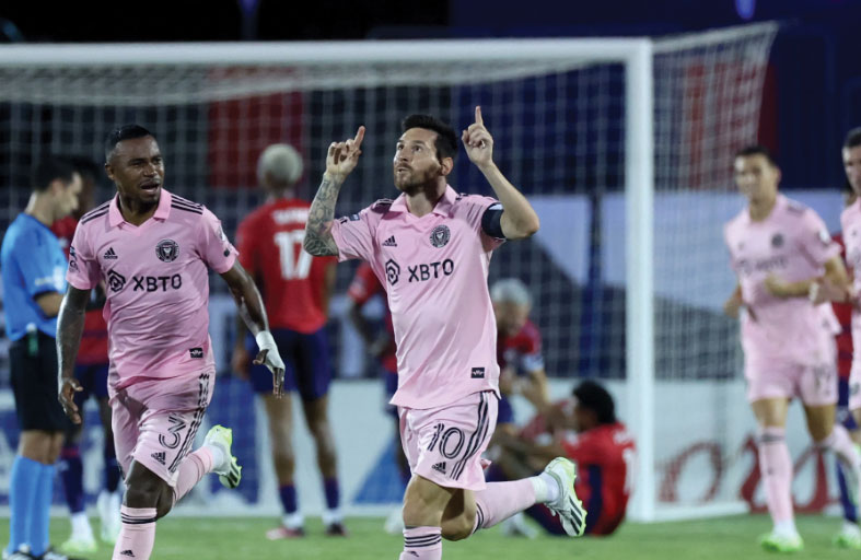 سجل النجم الأرجنتيني ليونيل ميسي هدفين وقاد فريقه إنتر ميامي إلى قلب الطاولة على أف سي دالاس بفوزه عليه بركلات الترجيح 5-3 بعد تعادلهما 4-4 في الوقت الأصلي على ملعب “تويوتا ستاديوم” في تكساس، وبلوغ الدور ربع النهائي لمسابقة كأس الرابطتين الأميركية والمكسيكية لكرة القدم. وتأخر إنتر ميامي بهدفين قبل 10 دقائق من صافرة النهاية، ليقلص الفارق عبر النيران الصديقة بعدما أودع المدافع ماركو فارفان الكرة في مرمى فريقه دالاس عن طريق الخطأ اثر ركلة حرة نفذها ميسي (80)، قبل أن يسدد الأخير كرة ساحرة من ركلة حرة على بعد 20 متراً استقرت في الزاوية العليا لمرمى الحارس الهولندي مارتن بايس (85)، فارضاً الاحتكام إلى ركلات الترجيح.
