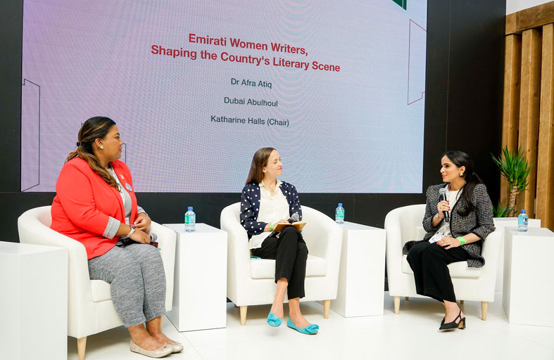 نظمت “هيئة الشارقة للكتاب” في جناح إمارة الشارقة التي تحل ضيف شرف الدورة الـ 49 من “معرض لندن الدولي للكتاب” جلسة حوارية استعرضت خلالها دور الكاتبات والأديبات الإماراتيات في تشكيل المشهد الثقافي العربي بشكل عام والإماراتي بشكل خاص إلى جانب تأثير التراث واللغة والموقع الجغرافي للدولة وتركيبتها السكانية على الأديب الإماراتي شارك بها كل من الشاعرة الدكتورة عفراء عتيق والروائية دبي أبو الهول.