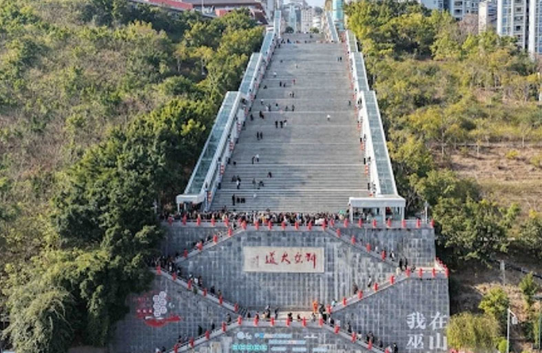 دشنت السلطات الصينية في محافظة ووشان التابعة لبلدية تشونغتشينغ، نظام "سلم ووشان الإلهة" "Wushan Goddess Escalator"، الذي يعد أطول مصعد خارجي من نوعه في العالم، وذلك وسط أجواء احتفالية تزامنت مع رقصات التنين والفوانيس الحمراء احتفاءً برأس السنة الصينية الجديدة.