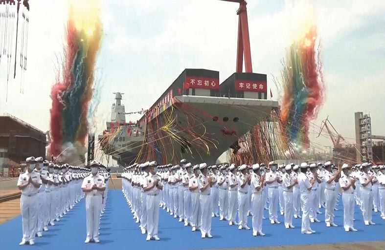 وبحسب وكالة أنباء الصين الجديدة شينخوا أُقيمت مراسم بمناسبة انزال السفينة إلى المياه في حوض لبناء السفن في شنغهاي ، ولم توضح الوكالة موعد تسليم حاملة الطائرات ووضعها في الخدمة. وأطلق على حاملة الطائرات اسم فوجيان تيمنا بمقاطعة صينية على غرار الحاملتين السابقتين لياونينغ وشاندونغ.