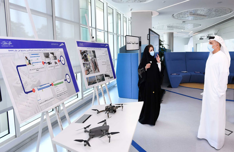 جاء ذلك خلال لقاء معاليه في اجتماعين منفصلين مع المديرين التنفيذيين ومديري الإدارات في كل من مؤسسة المرور والطرق ومؤسسة الترخيص حيث اطلع في الاجتماع الأول على مبادرة استخدام طائرات مسيَّرة بدون طيار الدرونز في أعمال الصيانة حيث تم استخدامها في فحص عناصر جسور المشاة لقناة دبي المائية والمرافق المرتفعة حيث تساهم الدرونز في تقليص الوقت والكلفة اللازمة لتقييم المرافق الإنشائية وفحص عناصر المنشآت التي يصعب الوصول إليها مثل كابلات التحميل Suspension Cables ووسائد الجسور Bridge Bearing. كما اطلع على أنظمة المتابعة الذكية داخل وسائد ارتكاز الجسور وهي حساسات يتم تثبيتها داخل ركائز الجسور لرصد وقياس الأحمال المطلوبة بالإضافة إلى تسجيل الظروف البيئية المحيطة حيث تساهم هذه الأنظمة في تسهيل عملية مراقبة حركة الجسر والظروف التي قد يتعرض لها خلال دورة حياته ومتابعة حركة الجسر والتنبيه السريع لمهندسي الصيانة في حالة تخطية الحدود التصميمية للأحمال والإزاحات التي قد تتعرض لها الركائز في الظروف المختلفة مما سيسهم في سرعة اتخاذ الإجراءات المناسبة بالصيانة وخفض التكلفة.