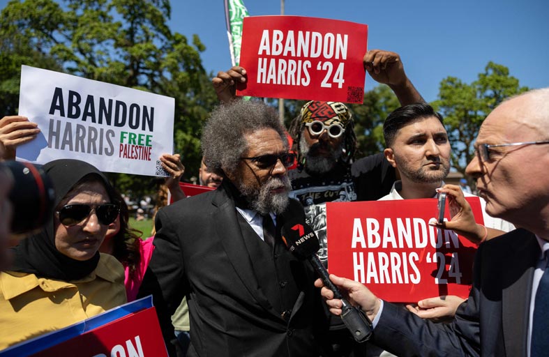 ويعد كورنيل ويست من رموز المناهضين للسياسة الأميركية خاصة تجاه الفلسطينيين والدول النامية، وشارك في العديد من التظاهرات المطالبة بوقف إطلاق النار في غزة وبوقف دعم اسرائيل.