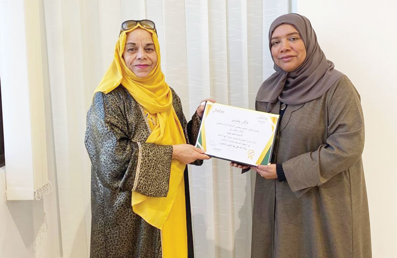 وسلمت سعادة الأستاذة صالحة عبيد غابش رئيس المكتب الثقافي ومدير تحرير مجلة مرامي شهادة شكر وتقدير للزميلة د سحر حمزة تثمينا لجهودها الإعلامية في متابعة وتغطية فعاليات المكتب الثقافي بمجلس الأسرة والمجتمع بالشارقة وتغطية فعالياته إعلاميا معربة عن شكرها وتقديرها لذلك .