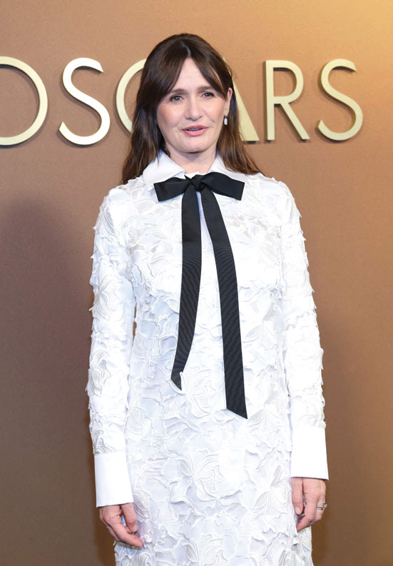 الممثلة البريطانية إيميلي مورتيمر لدى حضورها حفل توزيع جوائز الحكام السادس عشر في أوفايشن هوليوود. ا ف ب