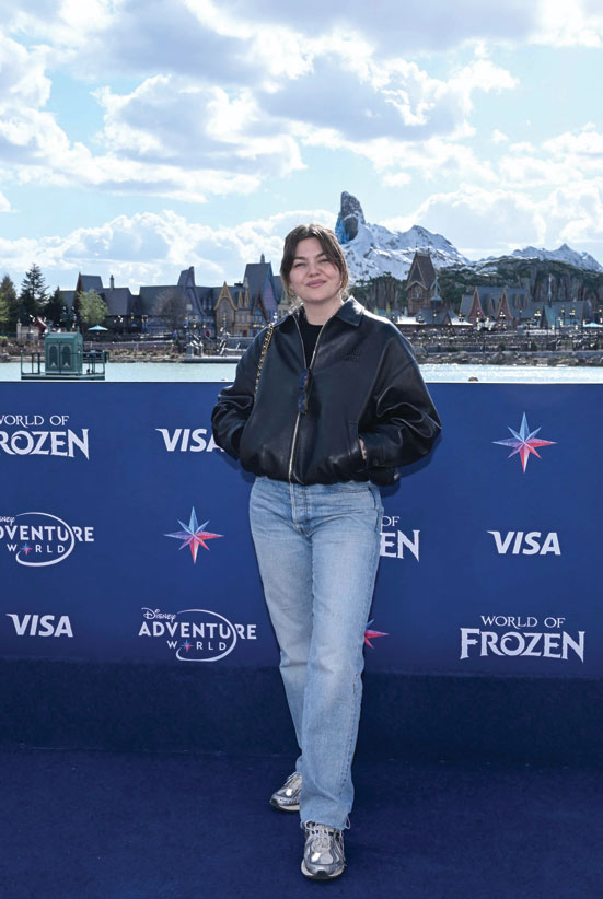 الممثلة والمغنية الفرنسية لوان خلال حفل افتتاح التوسعة الجديدة لمنتزه ديزني لاند باريس، تحت عنوان «عالم فروزن». ا ف ب