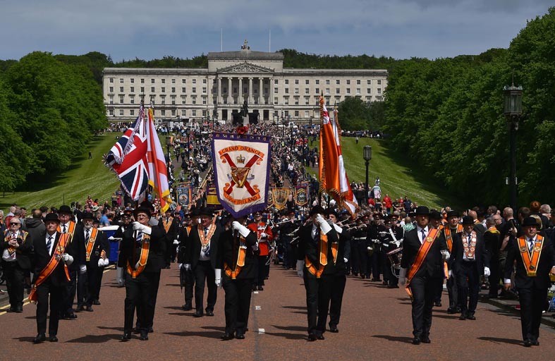 ومرت المسيرة من أمام نصب الزعيم الوحدوي في بداية القرن العشرين ادوارد كارسون. ويأتي الاحتفال في وقت عصيب بالنسبة للوحدويين الذين هيمنوا على الحياة السياسية في ايرلندا الشمالية في المائة سنة الأخيرة باستثناء فترات الحكم البريطاني المباشر، مع الفوز التاريخي لحزب “شين فين” القومي في الانتخابات. لكن الوحدويين يرفضون المشاركة في السلطة مع القوميين ويطالبون بإلغاء القيود التي فُرضت بعد بريكست على السلع التي تصل إلى إيرلندا الشمالية والقادمة من بريطانيا.
