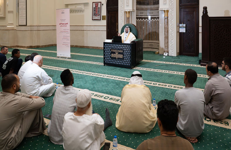 استضافت مدينة الذيد أعمال الأسبوع الثاني من المجلس العلمي لـ"تفسير سورة النور – في ضوء تفسير الطبري"، الذي ينظمه المنتدى الإسلامي في الشارقة، وذلك ضمن برامجه الثقافية والعلمية لعام 2026، الهادفة إلى نشر المعرفة الشرعية وتعزيز القيم المجتمعية. وشهد مسجد الشهيد سلطان بن هويدن بالذيد افتتاح الفعاليات وقدم الدكتور يوسف محمد المعاني، أستاذ التفسير وعلوم القرآن بجامعة جميرا، محاضرة تناول خلالها "الآداب الأسرية والاجتماعية" في سورة النور، مستعرضاً دلالاتها في ضوء تفسير الإمام الطبري، وارتباطها بواقع الأسرة المعاصرة. يأتي تنظيم المجلس العلمي الذي شهد حضوراً لافتاً من أهالي مدينة الذيد والمناطق المجاورة بهدف توسيع نطاق برامجه والوصول إلى مختلف مناطق إمارة الشارقة، بما يسهم في تعزيز دور المساجد مراكز للعلم والمعرفة، وترسيخ القيم المعتدلة في المجتمع. وتتواصل جلسات المجلس العلمي يومياً في مدينة الذيد، ضمن برنامج متكامل يجمع بين التأصيل العلمي والتفاعل المجتمعي، دعماً لرؤية إمارة الشارقة في تعزيز الحراك الثقافي والمعرفي.