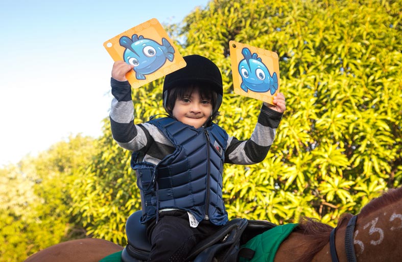 ويساهم ركوب الخيل للأطفال من أصحاب الهمم في تطوير القدرات النمائية في حالات الشلل الدماغي والإعاقة الجسدية والكثير من الاضطرابات النمائية حيث يزيد من قوة العضلات وسرعة الاستجابات الحسية والحركية والسيطرة على الجسم وتحسين وضعية الجلوس والوقوف وتوازن الجسم بشكل عام كما يساهم في إرخاء العضلات القاسية والمتشنجة وزيادة مستوى القدرة على التحمل وتحسين القدرة على تقدير المخاطر وتطوير التكامل الحسي والمد الحركي وتنمية مهارات التواصل لدى الأطفال.