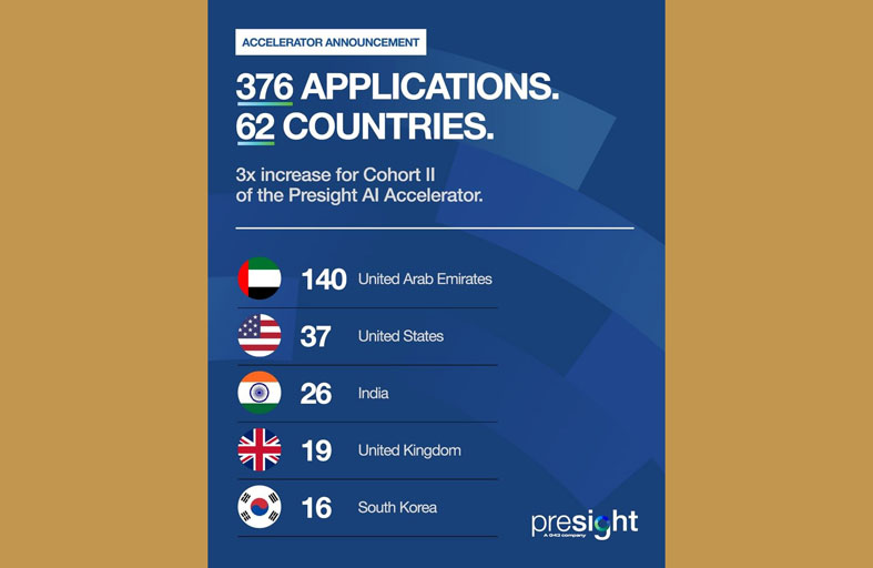 كشفت بريسايت، الشركة العالمية الرائدة في مجال الذكاء الاصطناعي ، التابعة لمجموعة G42 والتي تقوم بتصميم ونشر الأنظمة الذكية للحكومات وقطاعات البنية التحتية الحيوية، أمس عن تلقيها 376 طلباً من 62 دولة للالتحاق بالدفعة الثانية من برنامجها لتسريع نموّ الذكاء الاصطناعي.