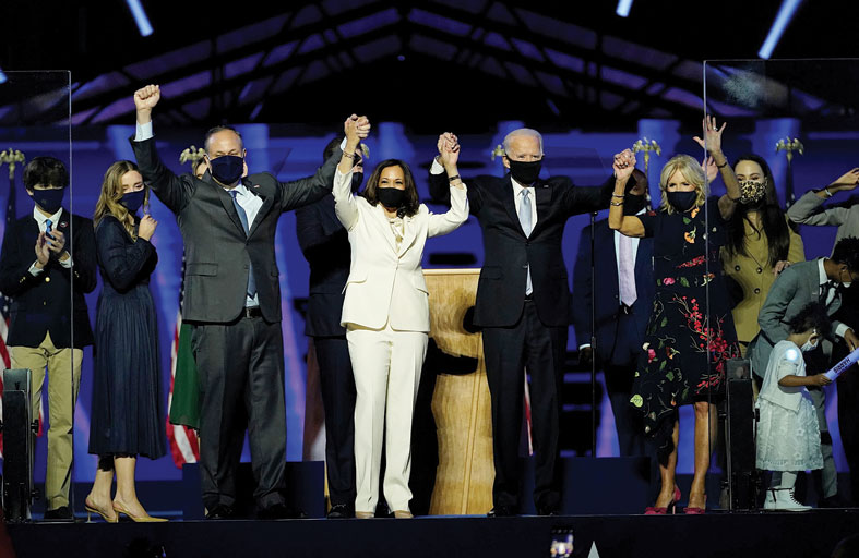 وتحدث بايدن بعد كلمة لتقديمه ألقتها السناتور كاملا هاريس التي ستصبح أول امرأة وأول أمريكية من أصل أفريقي أو آسيوي تتولى منصب نائب الرئيس ثاني أعلى منصب في البلاد.