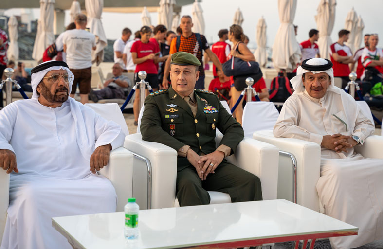 ومن حسن الطالع ان من بين ضيوف البطولة الكولونيل نيلتون جوميز رئيس الاتحاد الدولي للرياضة العسكرية “ السيزم” وهو مظلي قديم وقافز عاشق للعبة والذي يسعد كما يقول بتواجده في اي حدث بالامارات ويضيف :نحن في “السيزم” لدينا 140 دولة تتمتع بالعضوية الكاملة وننظم كافة الرياضات والانشطة الرياضية بين هذه الدول واستطيع القول بل اجزم ان دولة الامارات من بين الدول الاكثر نشاطا وفاعلية وحريصة على التواجد في كافة الفعاليات كما انها من افضل الدول تنظيما للبطولات ولقد سعدت سعادة بالغة بدعوتي لحضور ختام بطولة اوروبا للقفز بالمظلات “دقة الهدف “ فانا اعشق المظلات وتربطني صداقات عديدة بكل المسؤولين عن اللعبة والممارسين لها .