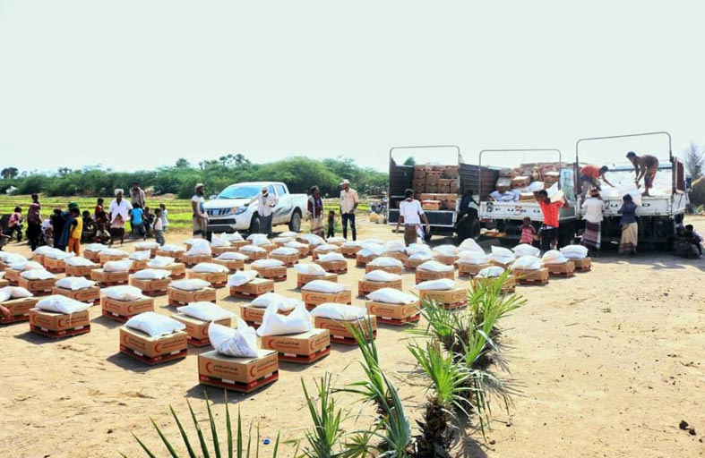 وعبر هيئة الهلال الأحمر تم تقديم 16 طنا من المواد الإغاثية لـ 1200 أسرة بمخيم العليلي بمدينة الخوخة الساحلية في محافظة الحديدة ضمن المرحلة الثانية للعام 2020.