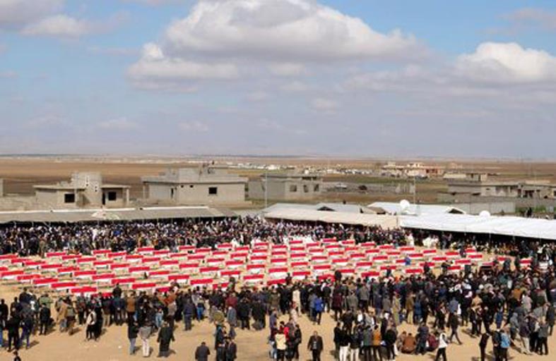 وحضر الرئيس العراقي برهم صالح ورئيس الوزراء مصطفى الكاظمي في الرابع من فبراير شباط جنازة رسمية أقيمت في بغداد لمئة وأربعة من الضحايا اليزيديين الذين تم تحديد هوياتهم، قبل دفنهم في كوجو التي لا تزال مهجورة يخيم عليها الدمار والخراب.