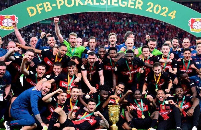 وجاء التتويج بلقب كأس ألمانيا على إستاد برلين الأولمبي بعد الخسارة المؤلمة أمام أتالانتا الإيطالي 0-3 في نهائي الدوري الأوروبي، مما حرم الفريق من تحقيق ثلاثية تاريخية، كما أنهى أتالانتا المسيرة الخالية من الهزائم لليفركوزن على مستوى كافة المسابقات.