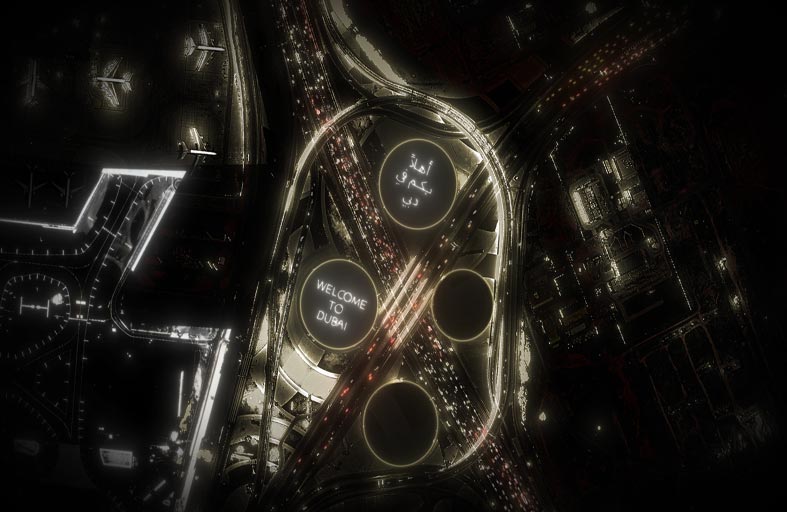 وحرصت بلدية دبي على أن يتميز المشروع بتصميم فريد يعكس روح الحداثة ويراعي مبادئ الاستدامة، نظراً لأهمية هذا التقاطع كأحد المعالم الأولى التي يراها الزوار القادمون إلى الإمارة، حيث تضمن التصميم عبارات ترحيبية باللغتين العربية والإنجليزية، "أهلاً بكم في دبي"، ما يعزز الشعور بالتميز والترحيب لدى الزوار منذ لحظة وصولهم.