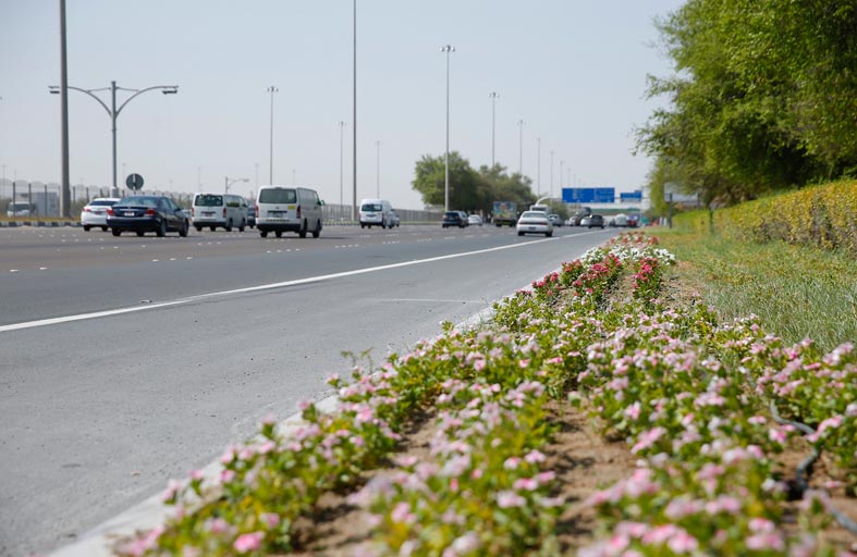 بلدية مدينة أبوظبي تجمّل جسور الشارع العام ومدخل مصفح بآلاف الزهور الموسمية والشجيرات المزهرة
