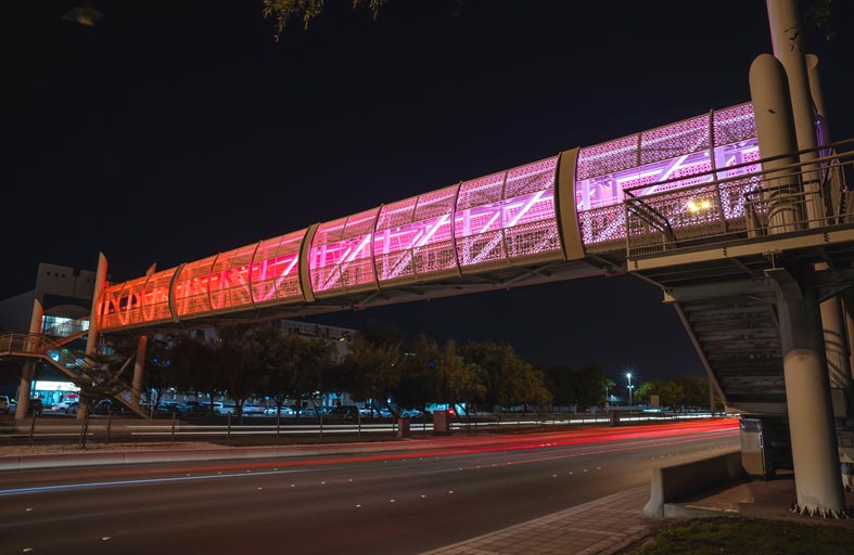 بلدية مدينة أبوظبي ترتقي بالإنارة التجميلية لجسر المشاة على شارع الشيخ راشد بن سعيد