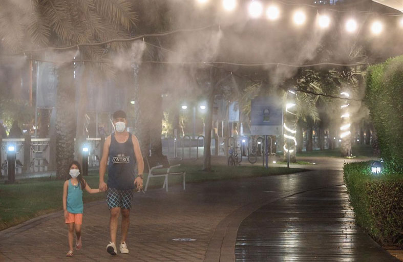 بلدية مدينة أبوظبي تركب نظام الرذاذ الضبابي على ممشى شاطئ كورنيش أبوظبي