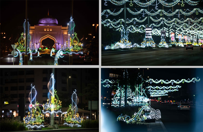 احتفاءً بشهر رمضان المبارك، وفي مشهد يعكس روحانية الشهر الفضيل، ويعزز المظاهر الجمالية والحضارية للمدينة، توشحت مدينة أبوظبي والمدن الخارجية بحلة ضوئية مبهرة، حيث أنجزت بلدية مدينة أبوظبي تركيب أكثر من 5200 تشكيل ومجسم ضوئي داخل مدينة أبوظبي وخارجها، مشاركة لأفراد المجتمع احتفاءهم بشهر رمضان المبارك.