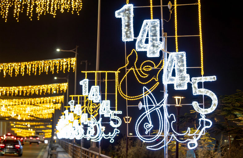 زيّنت بلدية مدينة أبوظبي شارع الكورنيش وعدداً من الجسور في جزيرة أبوظبي بمئات المجسمات والتشكيلات المضيئة احتفاءً بالعام الهجري الجديد 1445، تعزيزاً للمظهر الجمالي للمدينة ومشاركة لأفراد المجتمع احتفالاتهم باستقبال هذه المناسبة الجليلة وما تمثل من قيم وروحانيات إسلامية نبيلة.