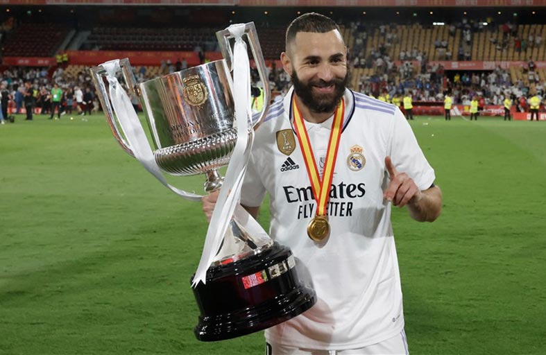 ولم يسجل بنزيما في انتصار الريال على أوساسونا أمس 2-1 في النهائي ولكنه كان حاسماً بثلاثية في إياب نصف النهائي أمام برشلونة وقبله في ربع النهائي أمام أتلتيكو مدريد.
