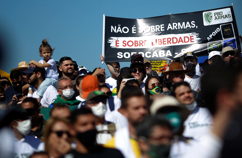 وحيازة الأسلحة النارية من القضايا الرئيسية التي دافع عنها بولسونارو، الضابط السابق في الجيش البرازيلي ومناصر الديكتاتورية العسكرية في البرازيل (1964-1985)، من أجل الدفاع عن النفس ومواجهة الجريمة في أكثر الدول عنفاً في العالم.