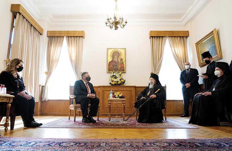 وبدأ بومبيو هذه الزيارة التي أثار برنامجها انتقادات أنقرة بلقاء مع بطريرك القسطنطينية المسكوني برتلماوس الأول، الزعيم الروحي للكنيسة الأرثوذكسية، في مقر البطريركية قبل أن يقوم بجولة في مسجد رستم باشا القريب.