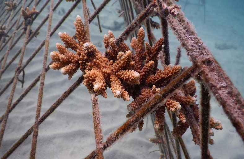 يتضمن مشروع الاستزراع تركيب عدد من الأقفاص شبه الثابتة مدعمة بالعديد من الأحبال، ويتم بعدها إدراج أجزاء الشعاب المرجانية على مسافات من 5 إلى 10 سم عن طريق إلتواء الحبل مؤقتاً، مع تحريك الأجزاء في الفتحات والسماح للالتواءات بتثبيتها مرة أخرى.