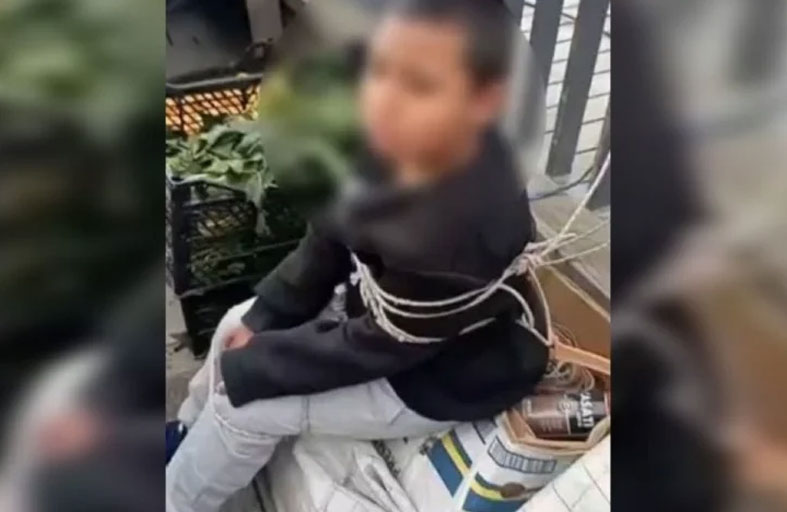تاجر يربط طفلاً في السوق بعد اتهامه بالسرقة