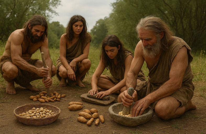 ويفند البحث الجديد الأسطورة الشائعة حول "آكلي اللحوم في العصر الحجري القديم"، مبينا أن أسلافنا في عصور ما قبل التاريخ قد استخدموا موارد نباتية متنوعة، إذ كانوا يخزنون المكسرات المطحونة والدرنات النشوية المطبوخة، ويستهلكونها.