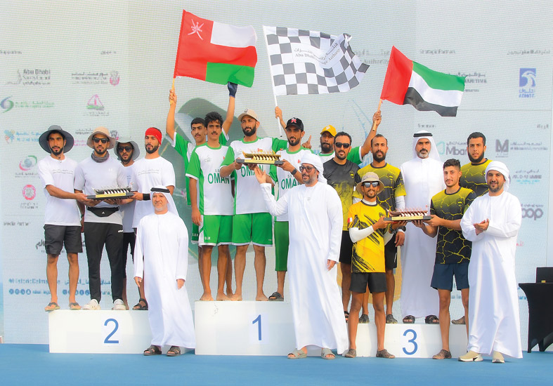 تتويج الفائزين بسباق دلما لقوارب التجديف التراثية فئة 40 قدماً