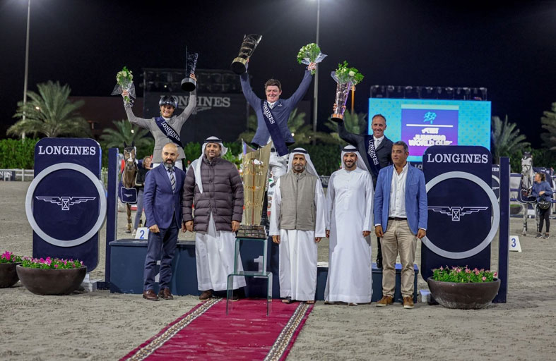 وحقق الفارس محمد حمد الكربي، من فئة الناشئين بنادي الشارقة للفروسية، مفاجأة من العيار الثقيل وأحرز الفوز بالمركز الأول مع الفرس “كاريرا دي هولبيك” في منافسة الحواجز الستة من فئة الخمس نجوم والأكثر إبرازاً لمهارات الفرسان والقدرات التحملية لدى خيول القفز.