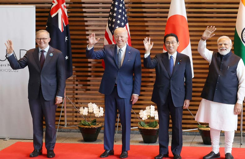 أعلن قادة اليابان واستراليا والولايات المتحدة والهند معارضتهم لكافة محاولات “تغيير الوضع القائم بالقوة، وخصوصا في منطقة المحيط الهندي الهادي”. وجاء بيان القادة عقب قمة للتحالف الرباعي للحوار الأمني (كواد)، وسط ضغوط دولية على موسكو على خلفية غزوها لأوكرانيا، وعلى وقع تصاعد القلق إزاء احتمال أن تسعى بكين للسيطرة بالقوة على تايوان التي تتمتع بحكم ذاتي.
