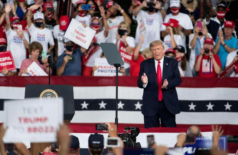 في وقت ستصل فيه بلاده قريبًا إلى 200 ألف حالة وفاة، وكذلك بداية أزمة اقتصادية، بينما كان الرئيس الأمريكي قد خطط، قبل الوباء، للقيام بحملة يبرز فيها نتائجه الاقتصادية الممتازة (نمو قوي، البطالة في أدنى مستوياتها).