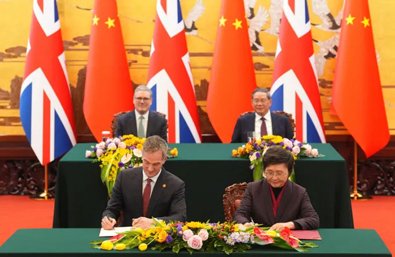 وستارمر أول رئيس وزراء بريطاني يزور الصين منذ عام 2018، وثالث مسؤول غربي كبير تستقبله بكين مؤخرا بعد رئيس الوزراء الكندي مارك كارني والرئيس الفرنسي إيمانويل ماكرون. والخميس، التقى ستارمر مع شي ومسؤولين صينيين آخرين، حيث وقع عدة اتفاقيات تعاون في مجالات مكافحة الهجرة غير النظامية والصحة والخدمات.