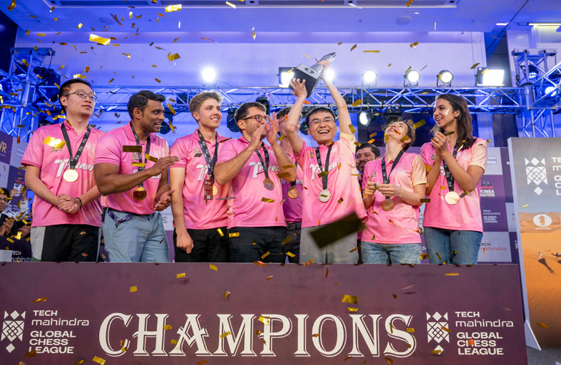 أحرز فريق ترايفيني كونتيننتال كينجز لقب النسخة الاولى من "الدوري العالمي للشطرنج" الأول من نوعه في العالم والذي أقيم في دبي خلال الفترة من 23 يونيو وحتى 2 يوليو ونظمته مجموعة ماهيندرا بدعم من مجلس دبي الرياضي وتحت مظلة الاتحاد الدولي للعبة. وأحرز ترايفيني كونتيننتال كينجز اللقب والجائزة الكبرى البالغة 500 ألف دولار بعد الفوز على مومبا ماسترز في النهائي المثير الذي حبس انفاس المتابعين واستمر التعادل فيه حتى النقلات الأخيرة في المباراة الأخيرة بين الفريقين. وأقيم النهائي بحضور أركادي دفوركوفيتش رئيس الاتحاد الدولي للشطرنج والشيخ سلطان بن خليفة بن شخبوط آل نهيان رئيس الاتحاد الآسيوي للشطرنج اللذان توجا الفريق الفائز بكأس البطولة التي شارك فيها أهم وأكبر الأبطال والأساتذة الذين يتصدرون الترتيب العالمي، وفي مقدمتهم النرويجي ماجنوس كارلسن بطل العالم للشطرنج 5 مرات متتالية من 2013 حتى 2022، والصيني دينج لي رن بطل العالم الحالي، والروسي إيان نيبومنياشتشي وصيف بطل العالم 2021 في دبي، والصينية هو ييفان بطلة العالم للشطرنج 4 مرات، والروسية كارتينا لاجنو وصيفة بطلة العالم 2018 وبطلة الشطرنج السريع 2014 الى جانب عدد من اللاعبين واللاعبات من جميع القارات الذين تم توزيعهم على 6 فرق تنافست بينها يوميا للفوز باللقب الأول من البطولة الأولى من نوعها على مستوى العالم.
