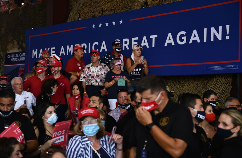 وقال ترمب: “جو بايدن هو دمية في يد حركة اليسار الراديكالية التي تسعى إلى القضاء التام على الولايات المتحدة وحدودها، يريدون هدم الجدار، لا يريدون حدوداً، يريدون مدناً آمنة للمهاجرين غير الشرعيين».