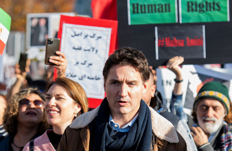 ترودو يشارك في مسيرة دعما للتظاهرات في إيران