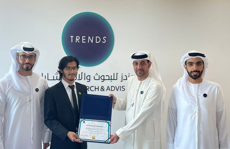 وقد احتفى مركز تريندز بتخريج زاكاري كينيدي طالب ماجستير بتخصص الآداب والعلوم السياسية بجامعة سانت لويس الاسبانية ، وطالبتين من جامعة زايد تخصص العلاقات الدولية ، والطالب محمد أمان صديقي، المتخصص في العلاقات الدولية بالجامعة الأمريكية في الشارقة، الذي أنهوا دورات تدريبية بالمركز تتصل بمتطلبات جامعتهم، وتركزت حول البحث العلمي وإعداد التقارير التحليلات، فيما يواصل طلاب اخرون من جامعات أخرى تدريبهم.