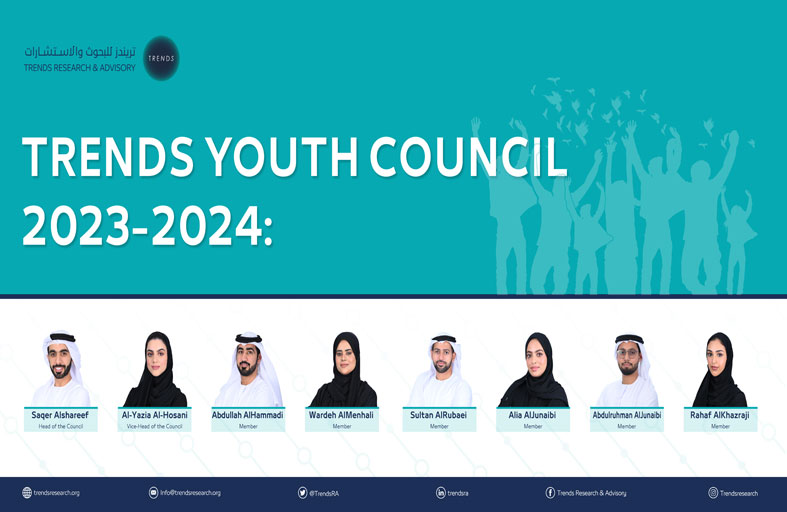 أعلن مركز تريندز للبحوث والاستشارات إعادة تشكيل «مجلس شباب تريندز» للعام 2023-2024 تعزيزًا لدورهم البحثي، وتفعيلًا لصقل مهاراتهم، باعتبارهم قادة المستقبل وصنّاعه المعوَّل عليهم للقيام بالإنجازات الكبرى وتحقيق الرؤى والاستراتيجيات المستقبلية.