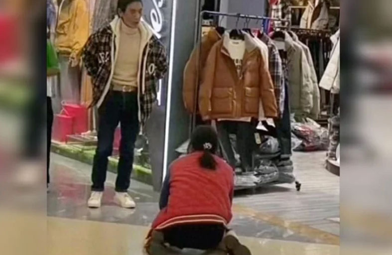 ويُظهر الفيديو، الذي جرى تصويره أمام أحد متاجر الملابس في مركز تسوق بمدينة شياوغان، بمقاطعة هوبي الصينية، المرأة وهي تجثو على ركبتيها، تتوسل إلى زوجها كي يشتري لها سترة من الريش الصناعي بسعر 299 يوان "حوالي 40 دولاراً أمريكياً"، بينما يوبخها الزوج لعدة دقائق، وفق ما ذكرته وسائل إعلام محلية.