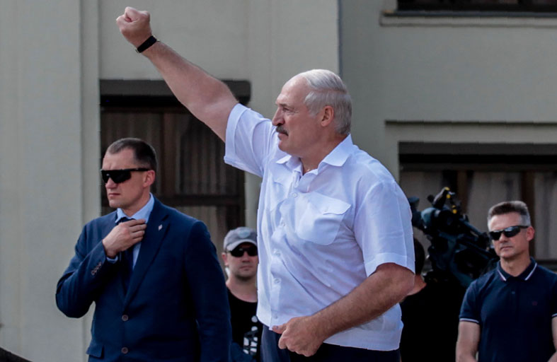 وواجه لوكاشينكو، الذي يتولى السلطة منذ 26 عاما، مظاهرات في الشوارع على مدى أسبوع ورفض مطالب بإعادة إجراء انتخابات يقول محتجون إنه تم التلاعب بنتائجها على نطاق واسع لإخفاء حقيقة أنه فقد الدعم الشعبي. وينفي خسارته الاقتراع، مستشهدا بالنتائج الرسمية التي منحته ما يزيد قليلا عن 80 في المئة من الأصوات. ويزعم لوكاشينكو البالغ من العمر 65 عاما وجود مؤامرة مدعومة من الخارج للإطاحة به. كما تحدث عن تعهد الرئيس الروسي فلاديمير بوتين بدعمه عسكريا إذا لزم الأمر، وهو أمر لم يؤكده الكرملين.