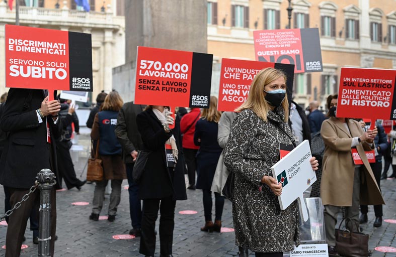 وتظاهر آلاف الأشخاص مساء الاثنين في عدة مدن إيطالية احتجاجاً على إغلاق المطاعم والحانات اعتباراً من الساعة السادسة مساء وكافة المسارح ودور السينما وصالات الرياضة لمدة شهر. ووقعت حوادث عنيفة خصوصاً في ميلانو وتورينو، المدينتين الكبيرتين الواقعتين في شمال البلاد، حيث نُشرت شرطة مكافحة الشغب وردّت على المتظاهرين بالغاز المسيّل للدموع. وأظهرت مشاهد نقلتها وسائل الإعلام الإيطالية في بث مباشر تخريب عدد من قطارات الترام وإضرام النار في مستوعبات نفايات وقلب دراجات وتكسير واجهات محلات. ويُفترض أن يقدّم رئيس الوزراء الإيطالي جوسيبي كونتي الثلاثاء تدابير الدعم للقطاعات والمهن الأكثر تضرراً من القيود المفروضة.