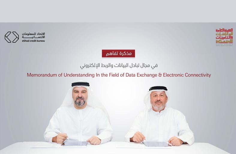 وقَّعت الهيئة العامة للمعاشات والتأمينات الاجتماعية مذكرة تفاهم مع الاتحاد للمعلومات الائتمانية، الجهة الاتحادية المتخصصة في تقنية البيانات وتبسط المعلومات المرتبطة بالنظام المالي، لإظهار قوة التحليلات الخاصة بالأوضاع المالية للمؤسسات والأفراد.